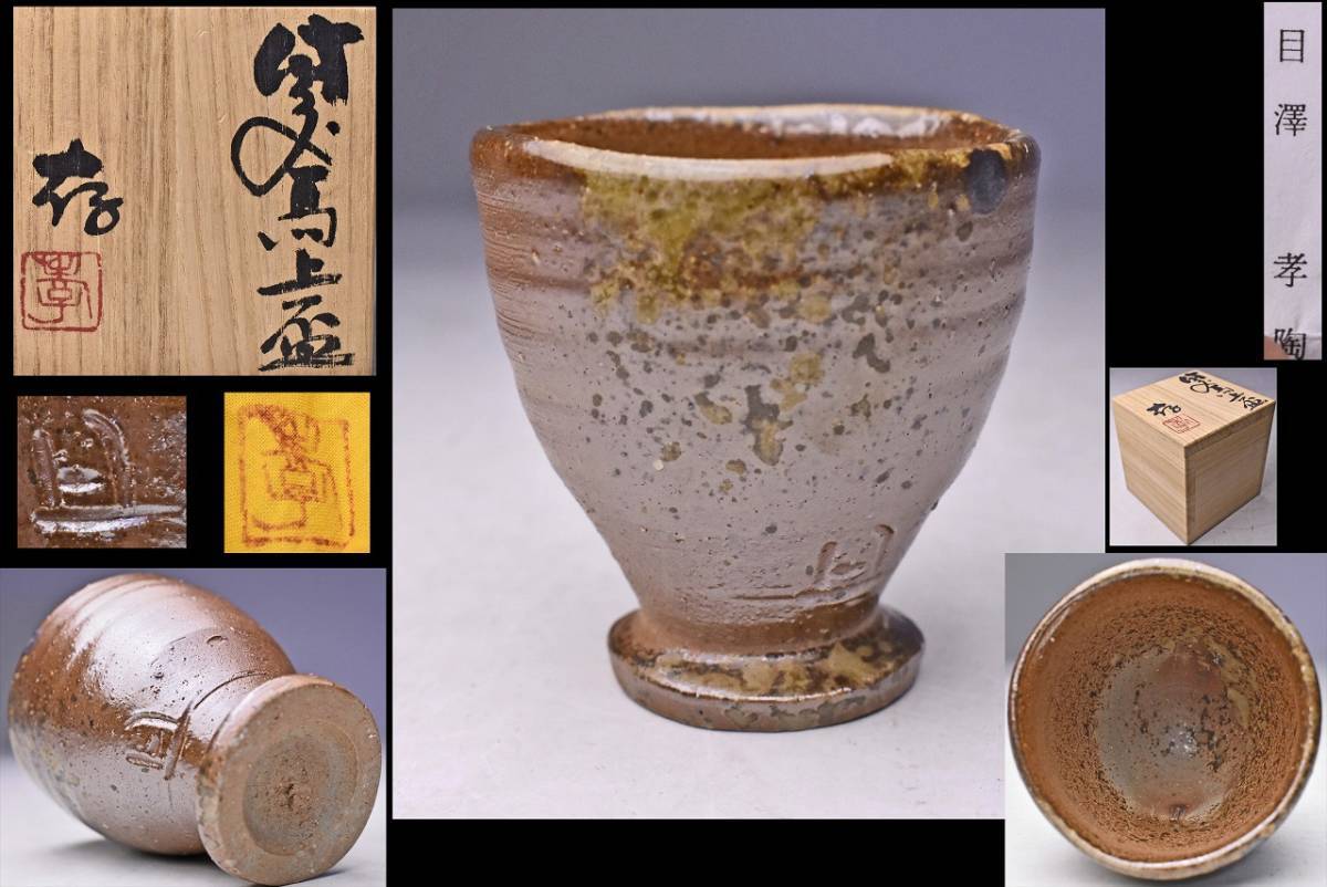 - 目澤孝 ★ 備前 馬上盃 ★ 共箱 共布 栞 ★師:藤原建 ★ ぐい呑 酒器 ★
