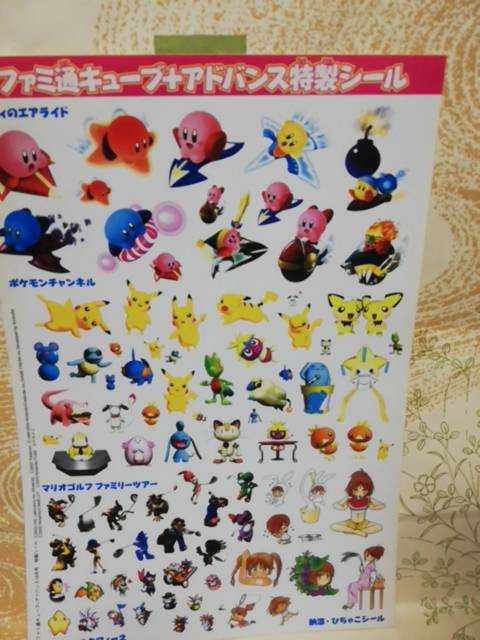 - B5-07 ファミ通キューブ+アドバンス10月号 特製シール カービィ ポケモン マリオ スタフィー 他