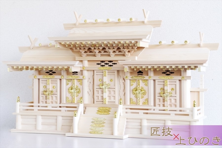 - マス組付き五社 大 ■ 美しい、東濃桧 ■ 升組造り 屋根違い 特大五社型 ■ マス組付 神棚