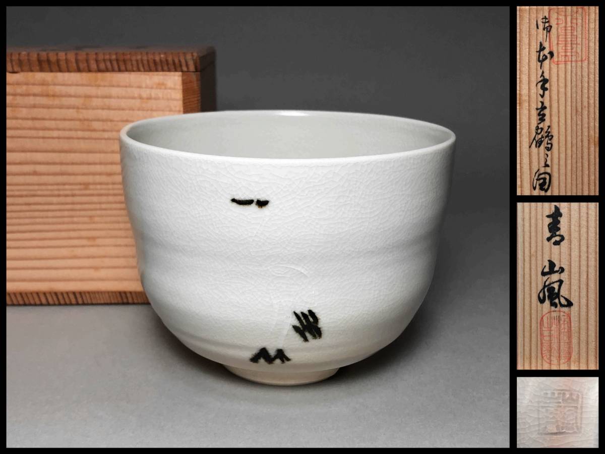 - A28 京焼 抹茶碗 永昌亭 青嵐 作 御手本立鶴ノ図 茶碗 共箱 茶道具