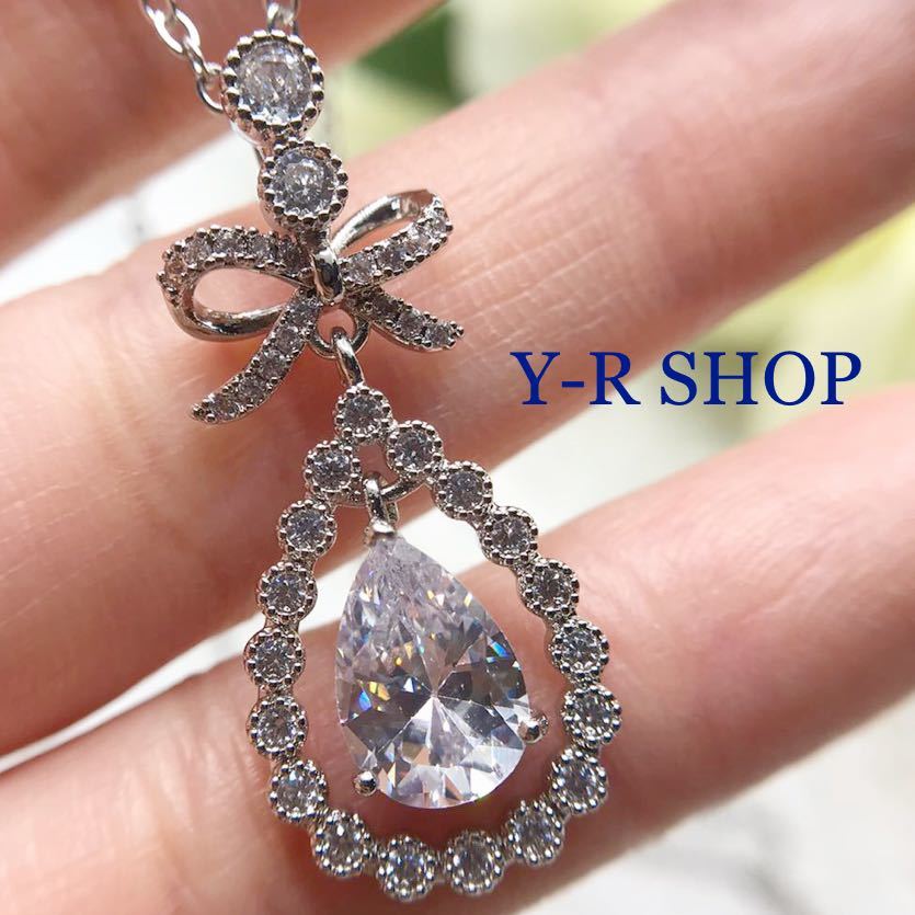 - ホワイトトパーズのリボンデザインペンダント★レディースネックレスシルバーカラーストーン キュービックジルコニア新品cz
