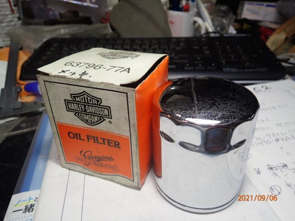 > ハーレー オイルフィルタ― 63805-77A メッキ 当時物 サビあり 外径75mm 高さ 86mm