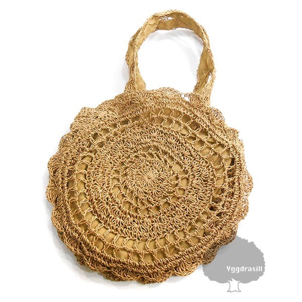 - YGG★人気 かぎ編み サークル ラウンド ショルダーバッグ クロシェ編み ペーパー ブラウン 茶 ストロー 肩がけ レディース