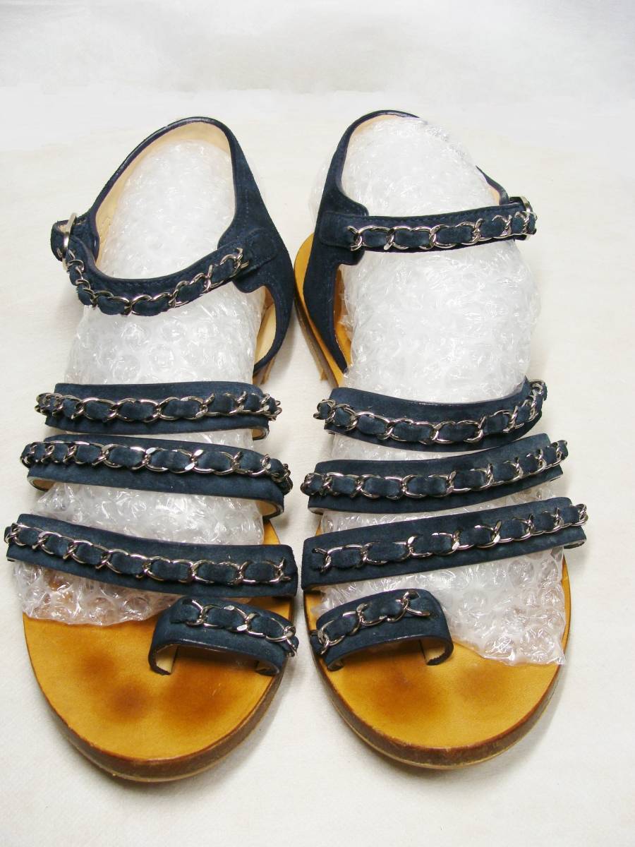 - CHANEL シャネル ◇ スエード レザー 皮 革 5連 メタル チェーン ストラップ サンダル シューズ 靴