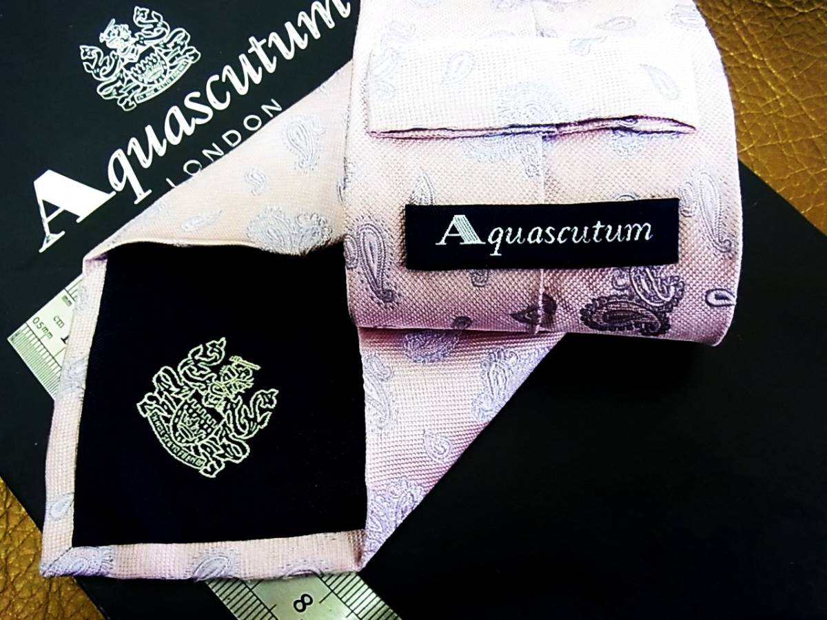 - №R3063♪良品 ♪【刺繍・ペイズリー】アクアスキュータム ネクタイ