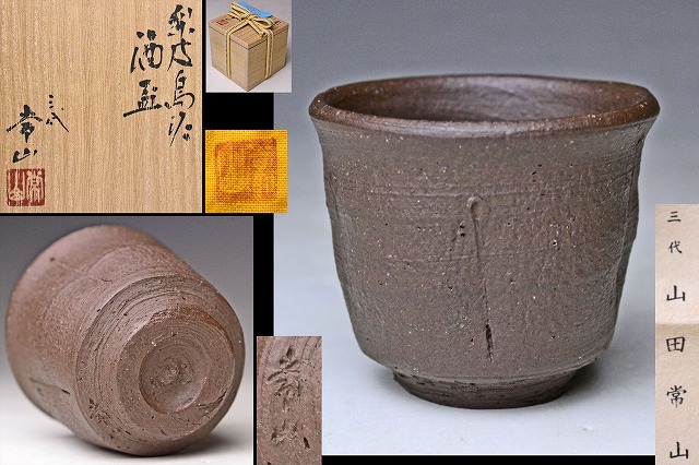 > 山田常山 3代 ★ 常滑 梨皮 烏泥 ぐい呑 ★ 共箱 共布 栞 ★ 人間国宝 ★ 土味良く流石の造形 ★ 酒器★ 煎茶碗にも ★ 杯 盃