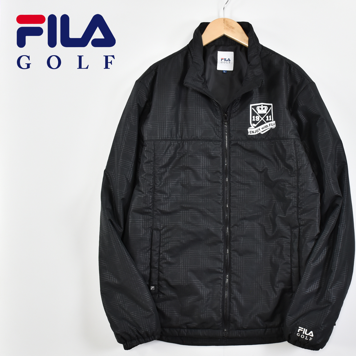 > FILA GOLF フィラ ゴルフ ★ 撥水 中綿入り フルジップ 千鳥格子チェック柄 ブルゾン 黒 メンズ L