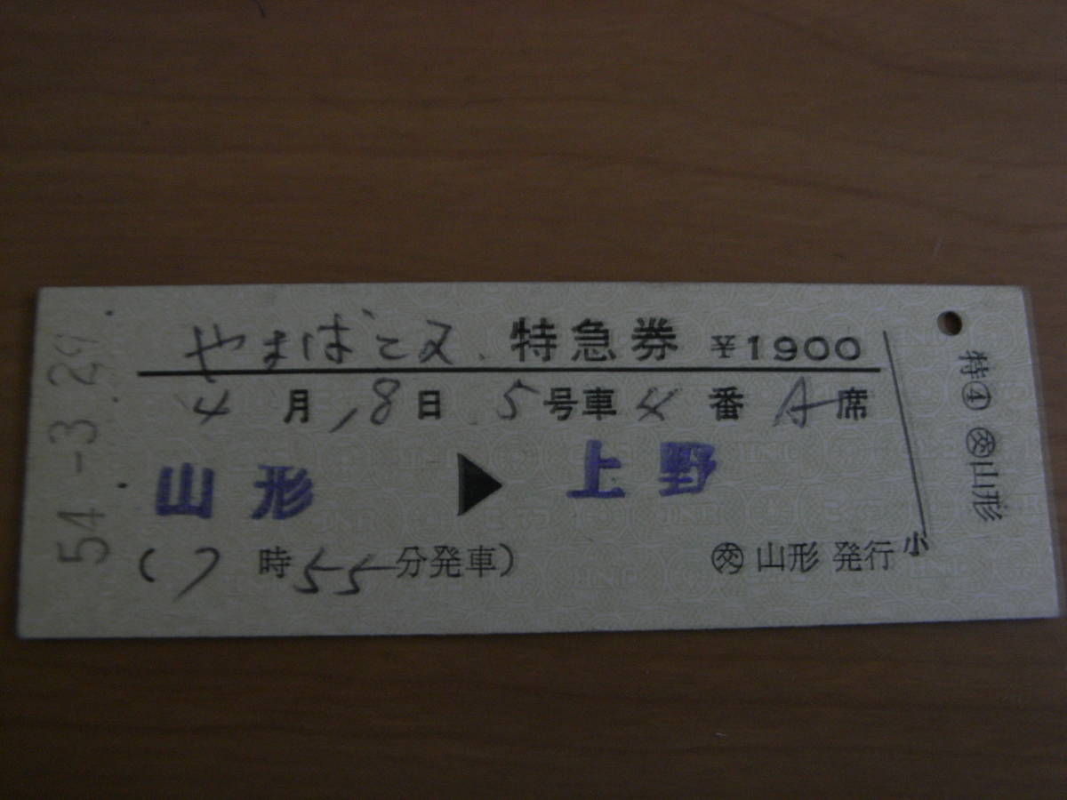 - やまばと2号 特急券 山形→上野 昭和54年3月29日発行 交 山形発行