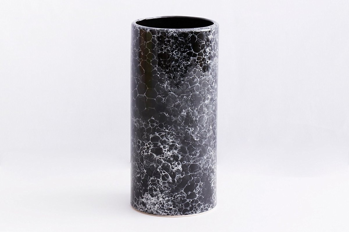 - 国産 陶器 ■ 黒マーブル 投入 6寸 ■ サイズ約 (cm) 高さ18 差込内径7.5 底径8.7 ■ 寸胴 花瓶 ■ 仏壇 お盆 お彼岸 お墓参り 供養