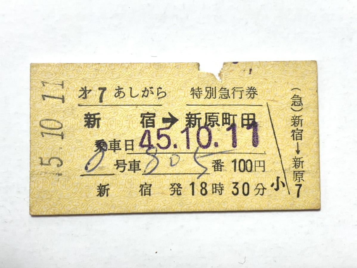 - 古い切符 小田急電鉄 新宿駅 新原町田駅 特別急行券 あしがら 昭和45年10月11日 硬券