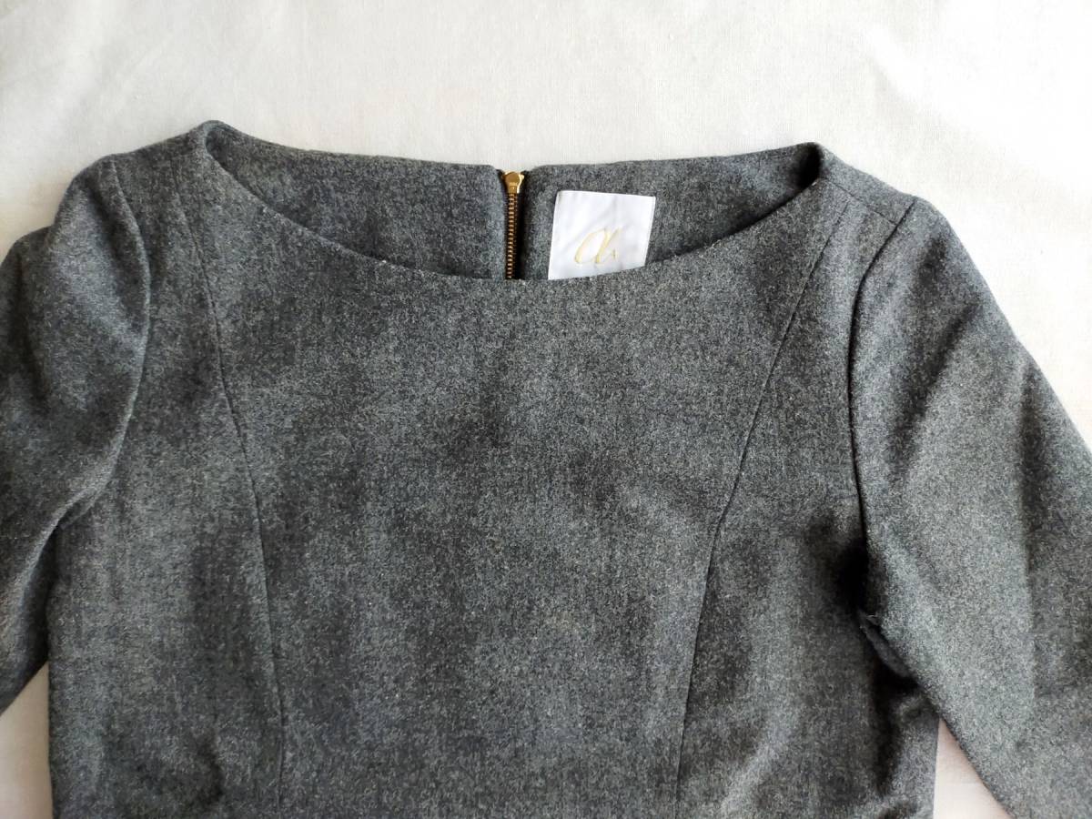 > A エィス ウール ワンピース S グレー ミニマル シンプル スカート ニット ワンピ ひざ丈 レディース 女性用 七分丈 七分袖