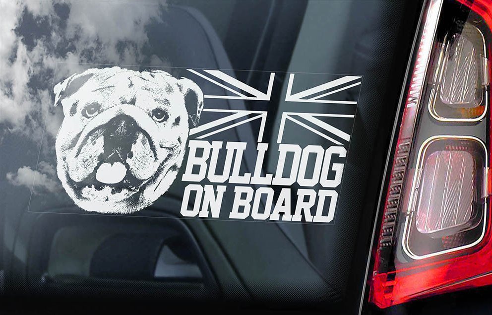- ◆送料無料【ブルドッグ】外張り カーステッカー 205×100mm@外貼り カー ステッカー ウインドウ シール DOG ON BOAD 犬 D3 2326-1