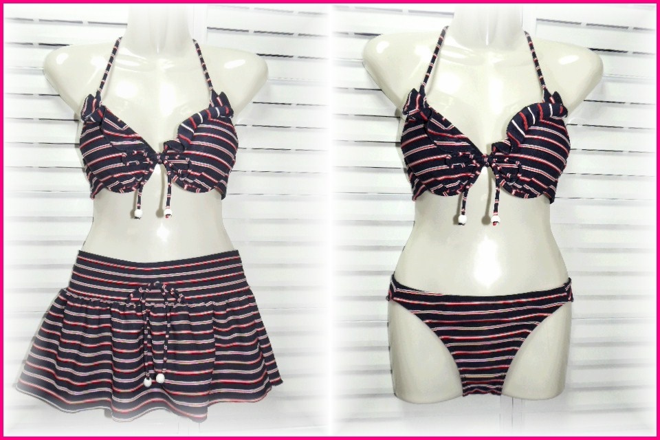 - 東レ・ディプロモード セパレート水着 スカートセット 7号/S ネイビー×ボーダー