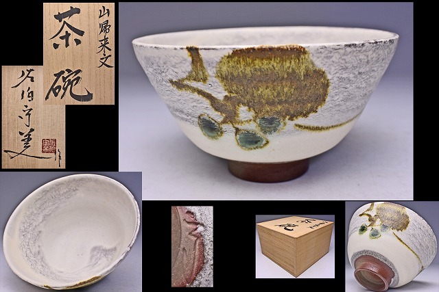 - 佐伯守美 ★ 鉄絵銅彩山帰来文茶碗 ★ 共箱 ★ 検 人間国宝藤本能道 ★ 益子焼 の 地で作陶 ★ 東京芸大出身