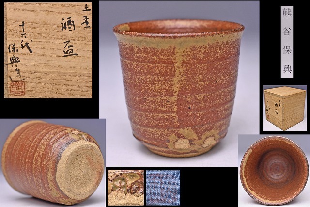 > 熊谷保興 ★ 上野焼 ぐい呑 ★ 共箱 共布 栞 ★ 父: 熊谷紅陽 ★ 小堀遠州七窯 ★ 酒器 盃 ★