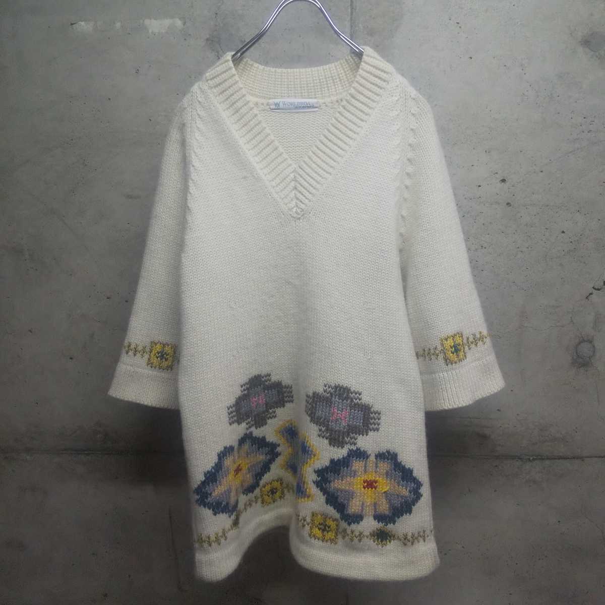 - 昭和レトロ ニット セーター チュニック 刺繍 ロングニット vintage ヴィンテージ ビンテージ used 古着