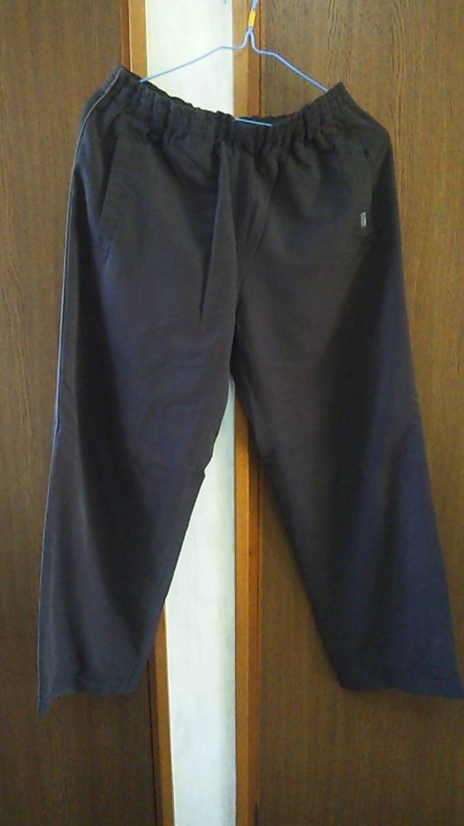 - .メンズ ズボン パンツ 黒 ウエストゴム 表示なし Mくらい 中古 裾裏地ほつれ