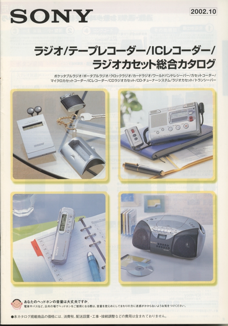 - Sony 2002年10月ラジオ/テープレコーダー/ICレコーダー/ラジカセ総合カタログ ソニー 管5100