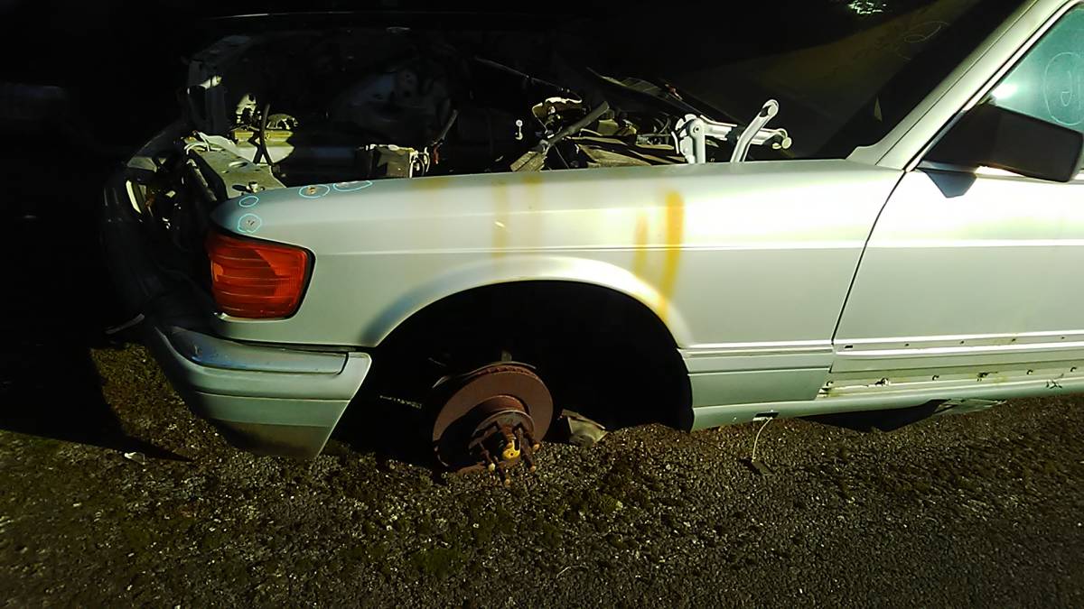> ■ベンツ W126 560SEC クーペ フロントフェンダー 左 中古 A1268811901 部品取あり ドア トランク サッコプレート パネル モール 380 500