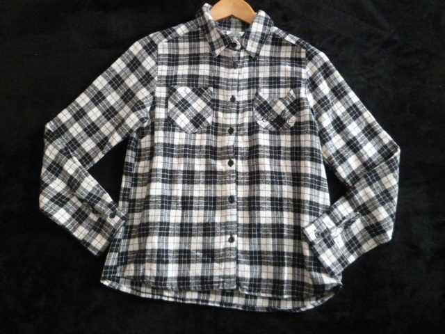 - SCOLar/スカラー△モノトーン系白×黒格子チェック柄ネルシャツM/長袖ロゴ刺繍入りシャルズブラックホワイト△STP119