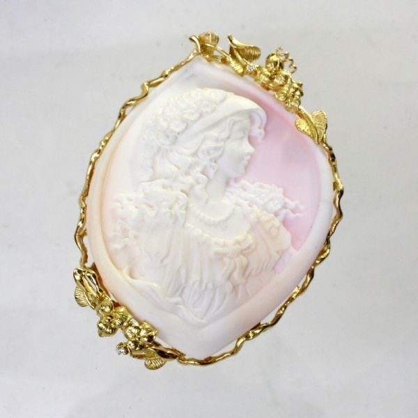 - ◎中古美品◎18金枠 ダイヤ コンクシェルカメオ ブローチ兼ペンダント