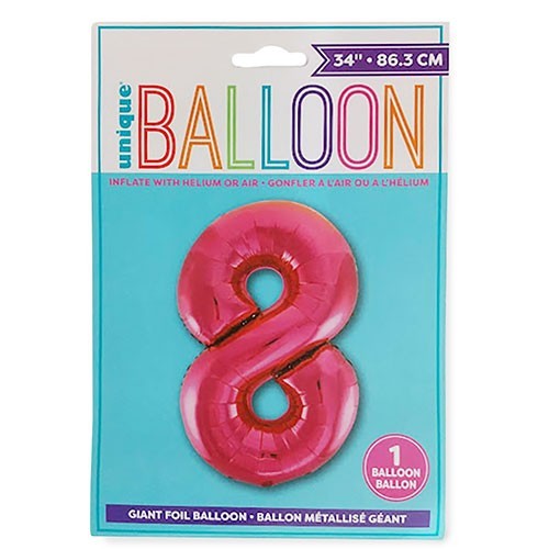 - 送料込 フォイル ナンバーバルーン (#8 ホットピンク) 34 86.3cm 16055 風船 数字 数 大きい 誕生日 パーティーグッズ party 飾りつけ