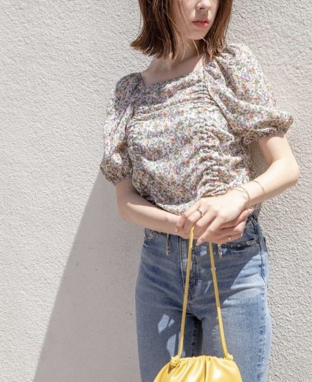 - SpRay 花柄シャーリングオフショルブラウス パープル