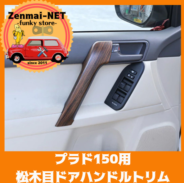 - X033 トヨタ ランドクルーザープラド150系 松木目ナチュラルウッド調のドアハンドルトリム 4点セット