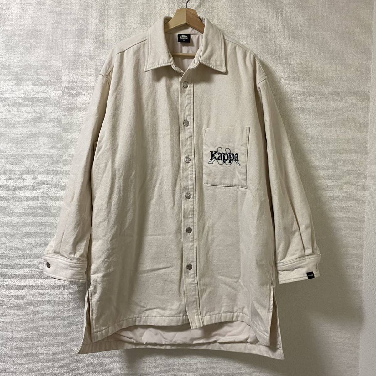 > 美品 GU x Kappa (ジーユー カッパ) オーバーサイズ デニム アウター ロングシャツ (L) NATURAL | ユニセックス コラボ 生成り 男性 女性