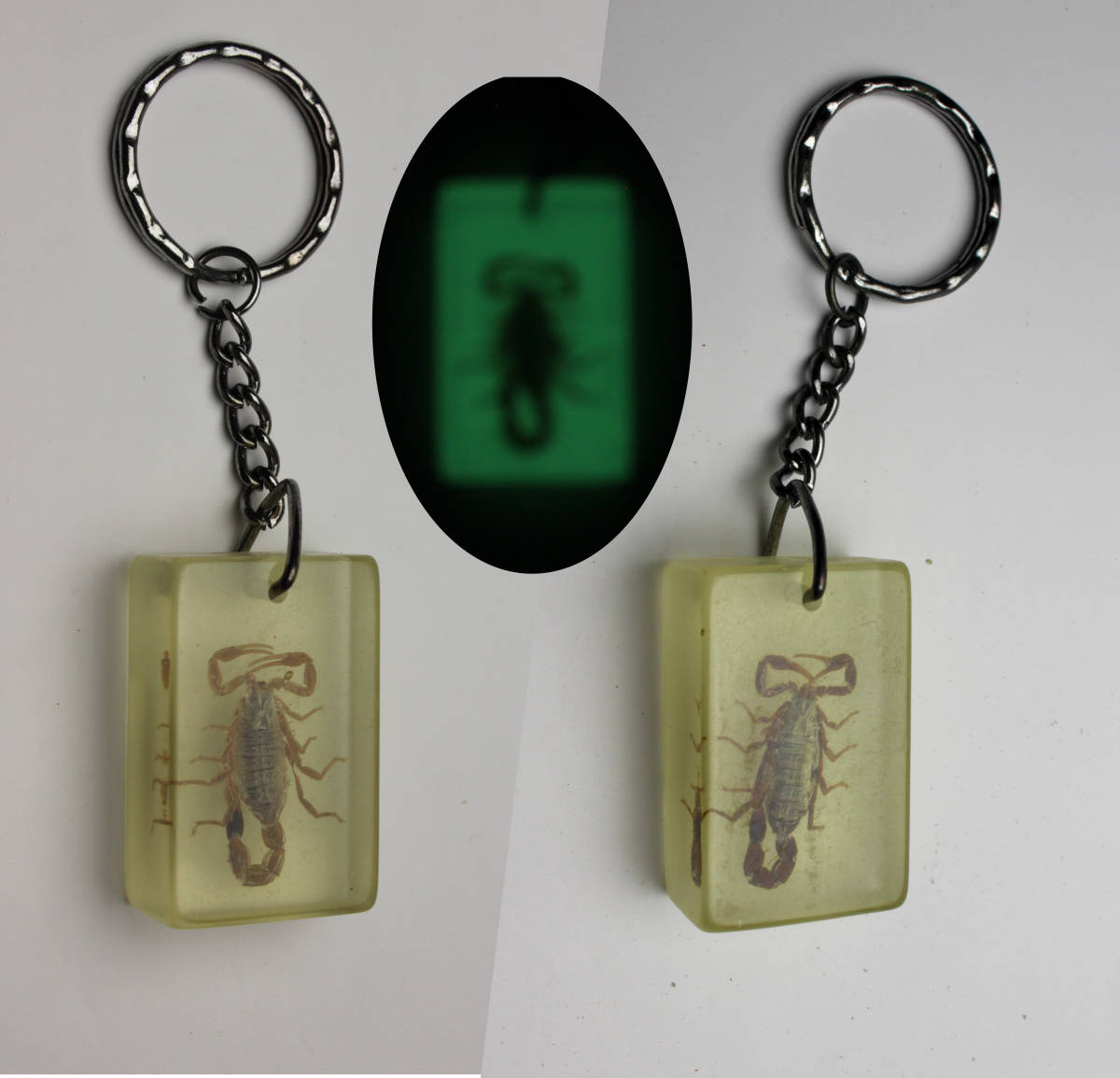 - サソリ キーホルダー 蓄光 夜光 標本【新品】USA セドナ アリゾナバークスコーピオン 幼生 剥製 蛍光 キーリング バッグ飾り キーチェーン