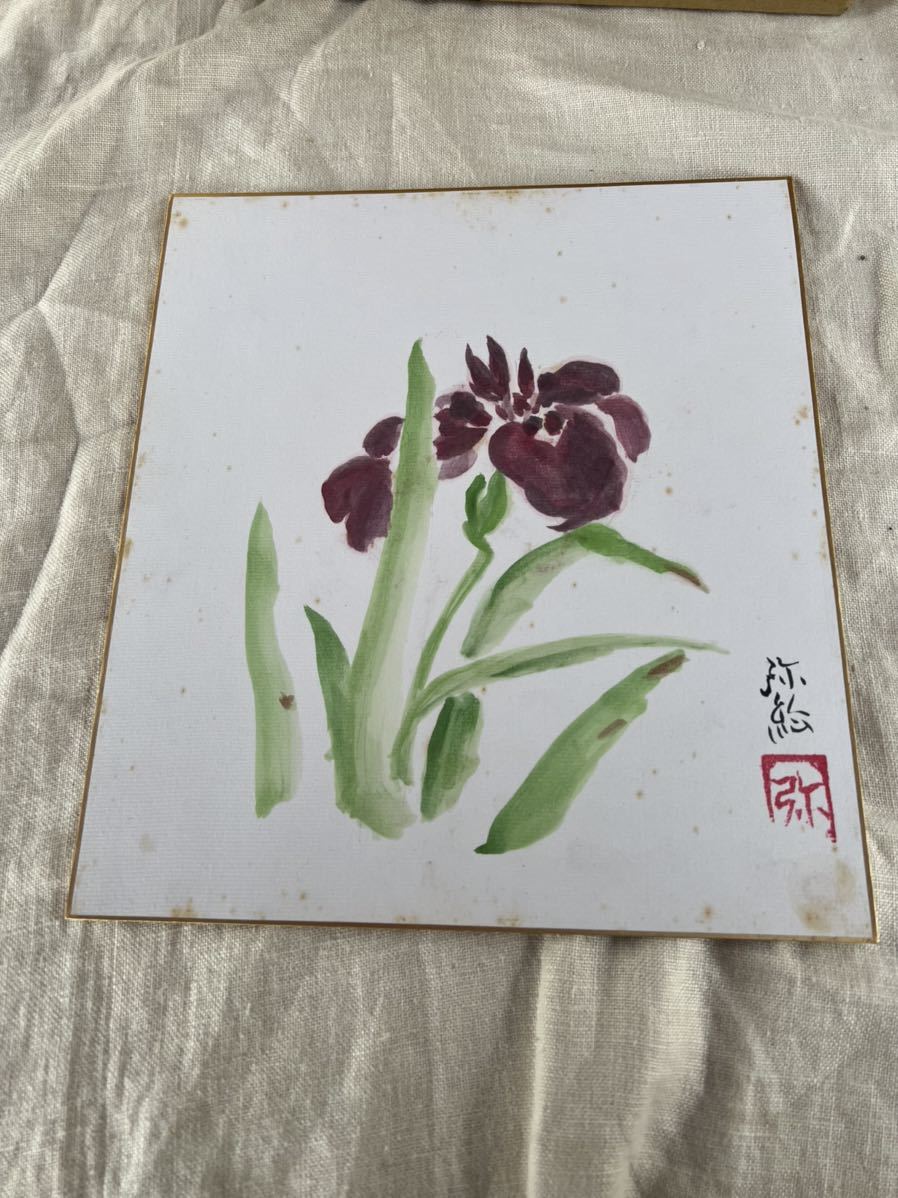 - ◆真作 色紙画 あやめ 弥絵◆A-2194