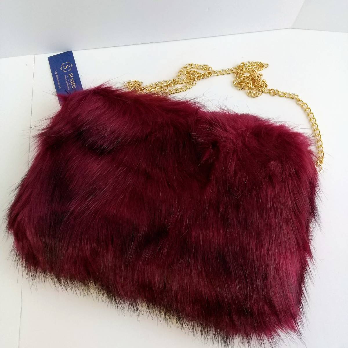 - 【未使用品】フェイクファー ショルダーバッグ・ワインレッド☆sale