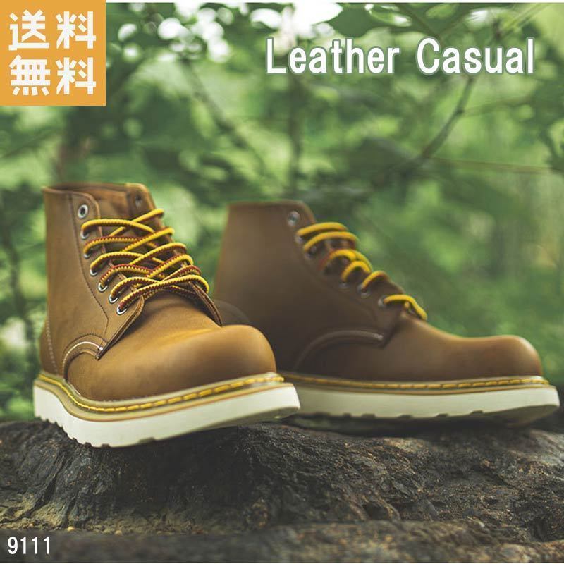 - 本革 ワークブーツ 27cm レザー レースアップ ブーツ スニーカー カジュアルシューズ 柔らか 9111