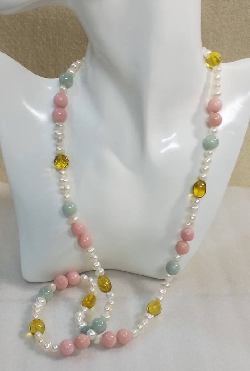 - ★最終8割引 琥珀 天然石 ネックレス グリーンアンバー・アゲート・パール アジャスタ無し 72cm★ABN7246⑩
