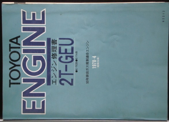 - トヨタ 2T-GEU E-TE,TA 53年排出ガス規制適合エンジン修理書。