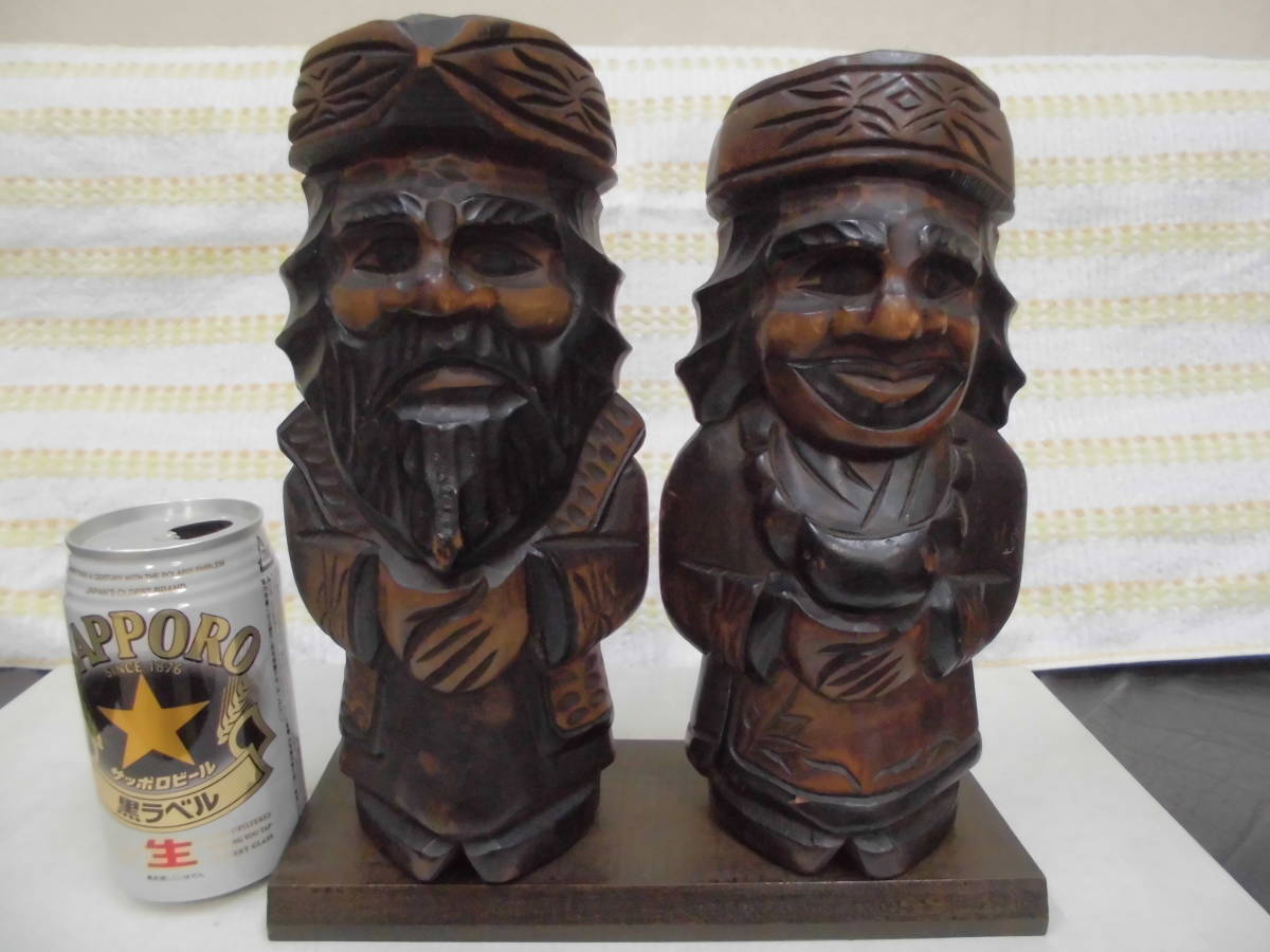 > ★良品!★木彫りニポポ人形 北海道 釧路 阿寒 アイヌ民族 工芸品 木工品 手彫り お土産 お守り 魔除け (奥棚下)