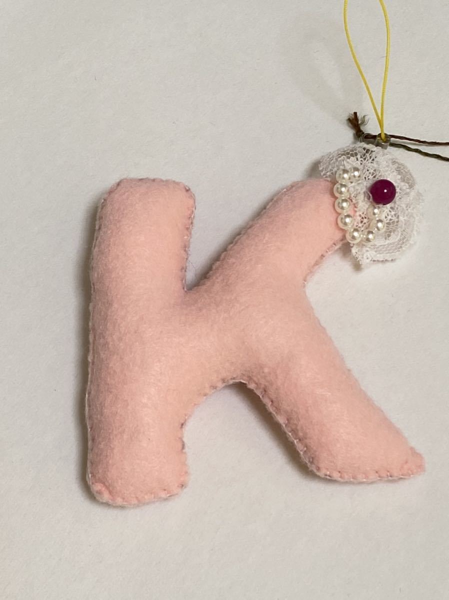 - ハンドメイド★ストラップ アルファベットK レース付き(693)値下げ
