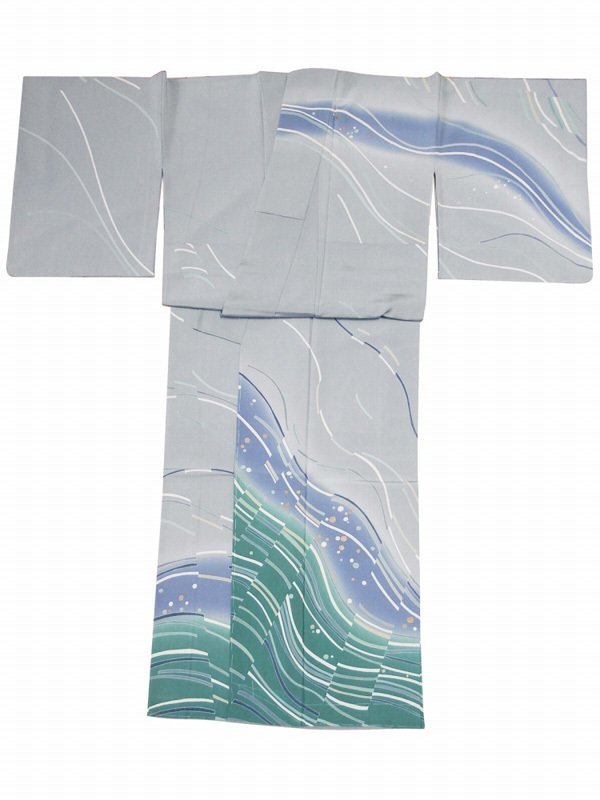 - ■訪問着■ お仕立て上がり 正絹 着物 単品 身丈163.5cm グレー色 sh-69