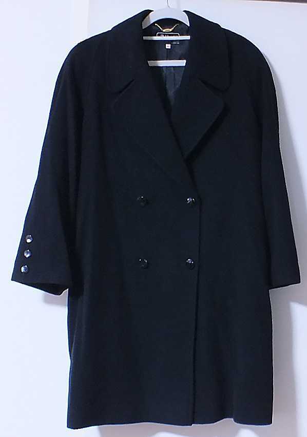 - 古着☆Addenda☆ウールロングコート☆黒長袖☆レナウン☆ピーコート