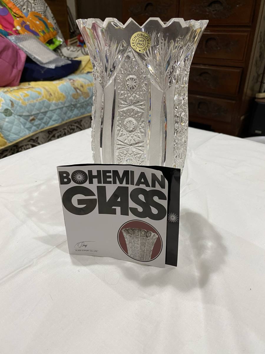 - ボヘミアクリスタル 花瓶 チェコスロバキア 24%Pbo ハンドメイド