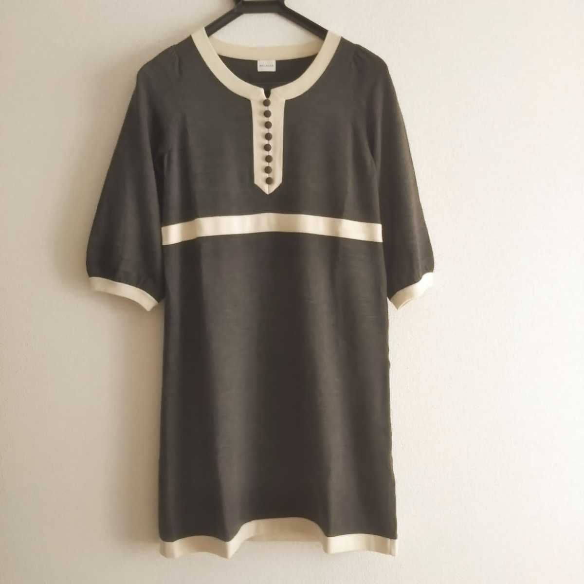 > MELROSE メルローズ ニットワンピ ニット ワンピース M ウール グレー バイカラー ツートンカラー 膝丈 ミニ パフスリーブ パイピング