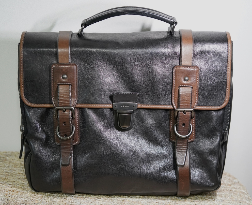 - 美品 PRADA プラダ メンズ ビジネスバッグ バッグ ブリーフケース ダブルベルト
