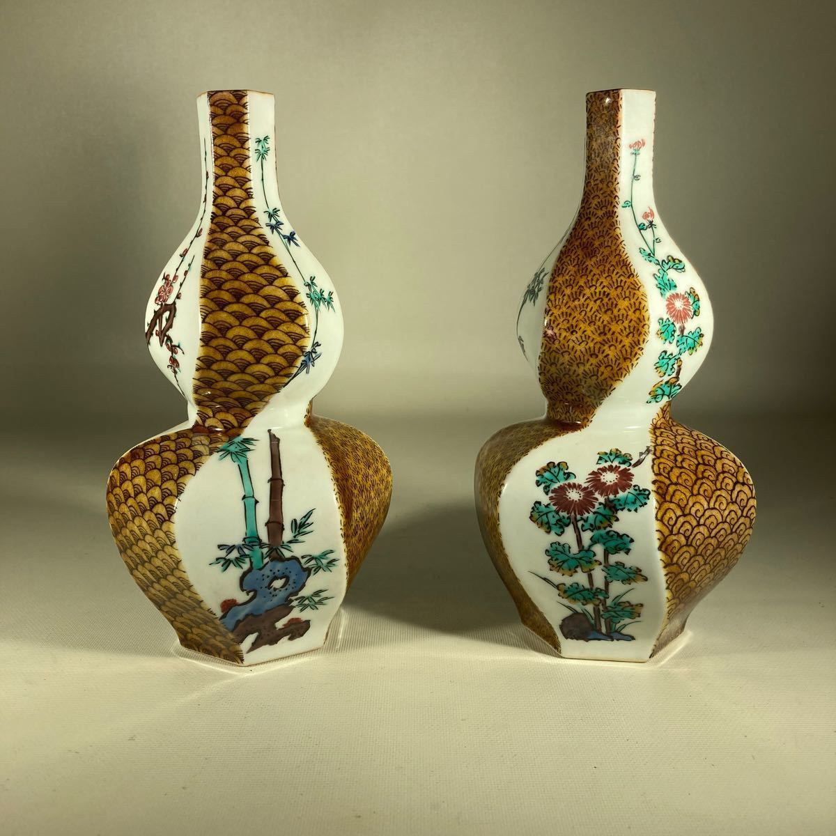 - 初代三ツ井為吉(九谷為吉作 四君子図徳利 一双 共箱 色絵 酒器 888