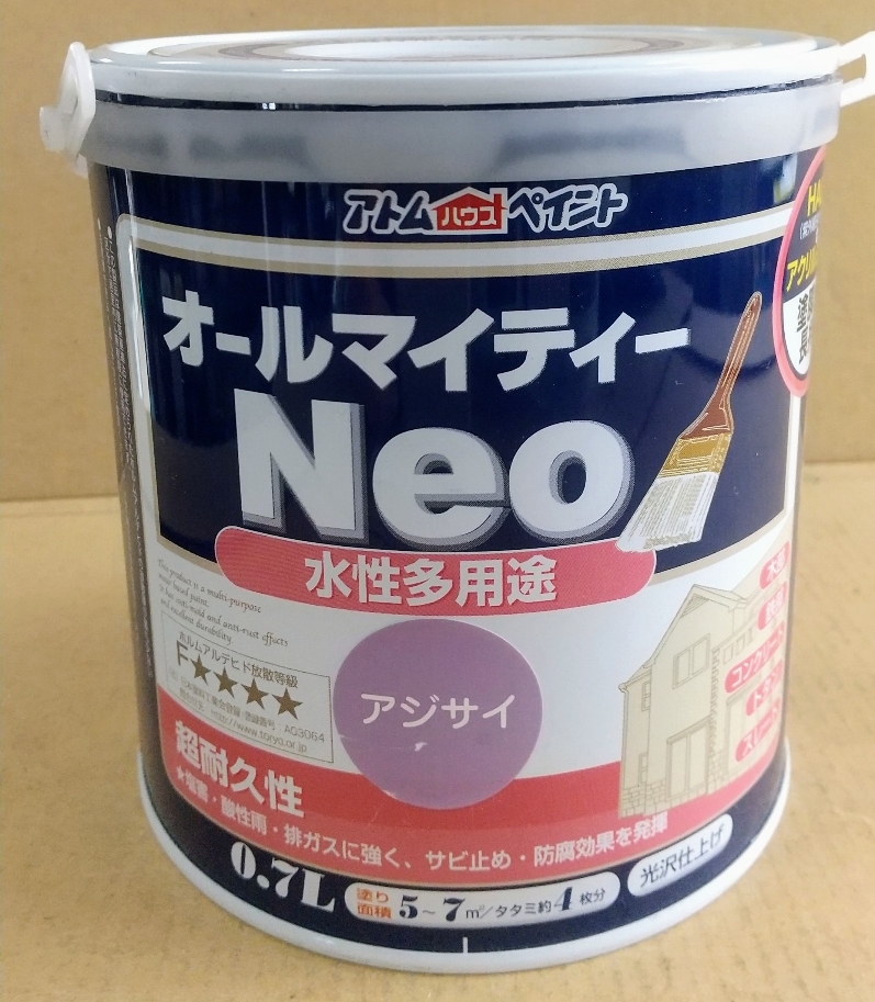 - 水性塗料 アジサイ うす紫 0.7L つやあり オールマイティネオ アトムハウスペイント 薄紫 紫 パープル むらさき