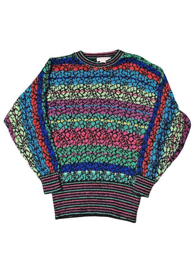 - 1980s ビンテージ 総柄 ウール ニットセーター クルーネック 古着 デザイン レア アート 派手