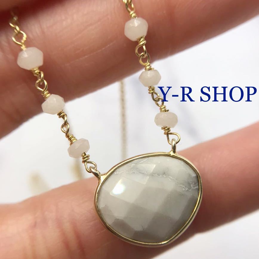 - 天然石★ハウライトターコイズとカルセドニーのネックレス★レディースペンダントゴールドアクセサリーカラーストーンY-RSHOP新品宝石
