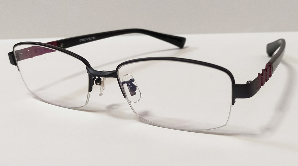 - DEVICE デバイス D-114 c1 ブラック/レッド ナイロール 日本製 好印象なスクエア型 ケース、メガネクロス(篠山タータン柄)付