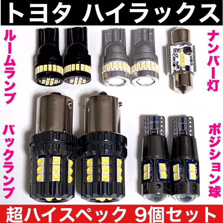 > ルームランプ トヨタ ハイラックス GU125 爆光 バックランプ ポジション球 ナンバー灯 ウエッジ球 純正球交換用バルブ ホワイト 9個セット