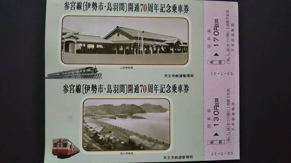 - 0219-7【国鉄記念きっぷ】参宮線(伊勢市・鳥羽間)開通70周年記念乗車券 鳥羽駅 昭和56年
