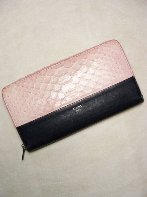 > CELINE セリーヌ ◇ エキゾチック パイソン スネーク レザー 切替 バイカラー ラウンド ジップ ロング ウォレット 長 財布